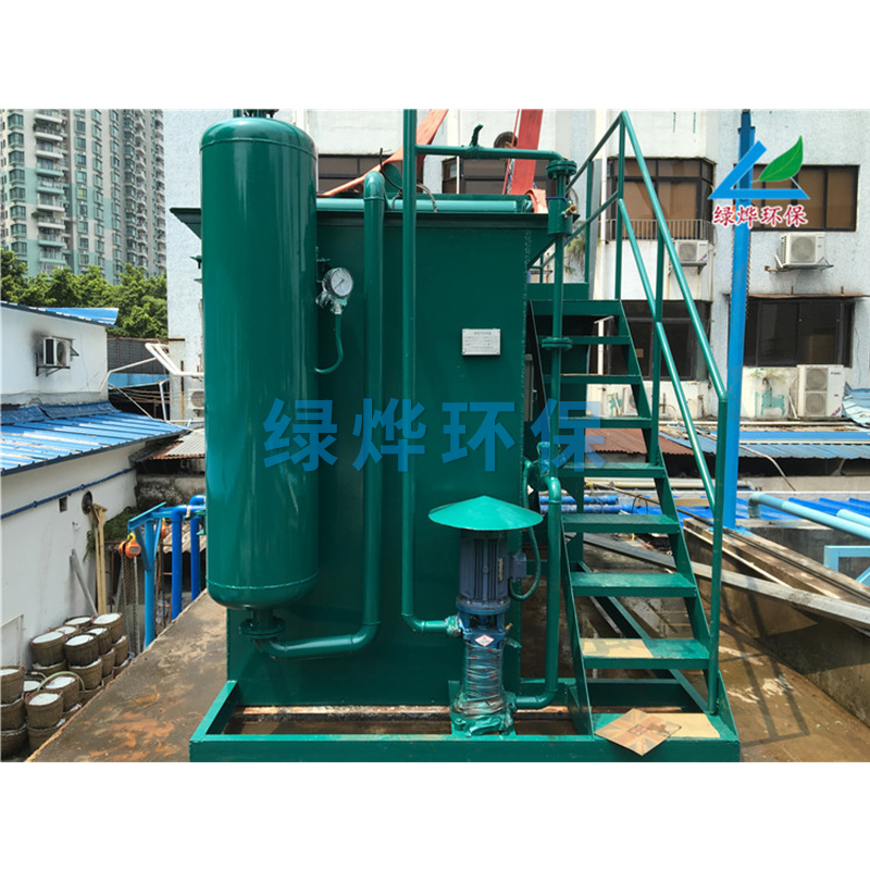 一元化气浮设备主要是将气池池、溶气罐、溶气水泵、投药设备和空压机或射流器有机地组合一体。这样的集成,占地面积小,操作方便,且不需做基础,也可缩短安装时间,减少工作量。一元化气浮设备主要起固液分离作用(同时可以降低COD、BOD、色度等)。一元化气浮设备主要利用溶气系统产生的溶气水中的微气泡,与水中的悬浮物絮体粘合在一起,悬浮物随微气泡一起上升至水面,形成浮渣,使水中的悬浮絮体得到去除,该设备用户单位只要接上调节好PH值的污水到进出等管口,一经调试好后,正常运行,不需专人管理,运行基本达到自动化无人管理状态。它应用于电镀、印染、食品、屠宰、炼油、废水的油脂、化工、造纸废水及生活饮用水方面。